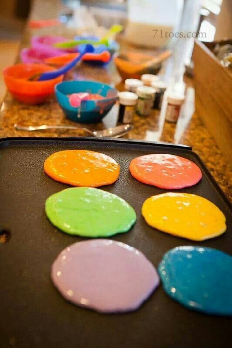 If you're babysitting in the morning, make breakfast fun! Make pancakes just as you would normally, but add food coloring! Yum!
