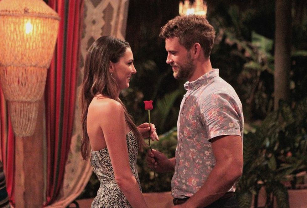 Rachel is a 31-year-old attorney from Dallas, Texas. She received the first impression rose on night one clearly due to her eloquence and confident demeanor. While she is very intelligent and has an obvious connection with Nick, her bio talks a lot about her "missing out on love" due to her career. I worry that she might have trouble opening up to Nick or their future career plans may not align enough for something to work.