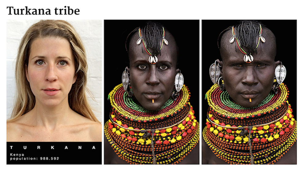 Recently, Hungarian journalist Boglarka Balogh took to the Internet to raise awareness for African women who are nearing extinction within their respective tribes. The writer and human rights lawyer created the campaign "I Morphed Myself Into Tribal Women To Raise Awareness Of Their Secluded Cultures" in late December. It uses seven stunning images of women from the Himba, Turkana, Mursi, Arbore, Daasanach, Karo, and Wodaabe communities, says The Guardian.