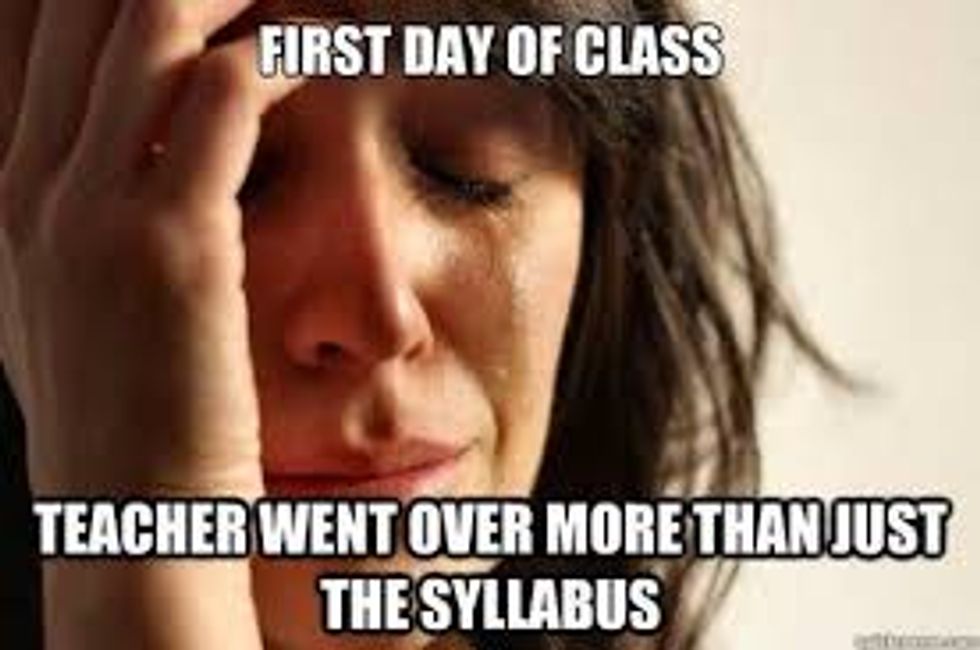 There is an unspoken rule that you cannot do anything more than go over the syllabus on the first day. If you do, you have violated teacher rule #1. Do not pass go and do not collect 200 dollars.