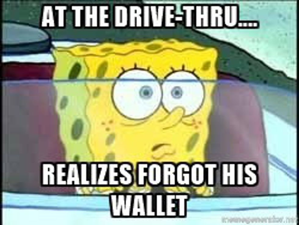 Why are you even here? And you shouldn't be driving...chances are if you forgot your wallet you also don't have your license. Above it all, now we have to throw out your order.