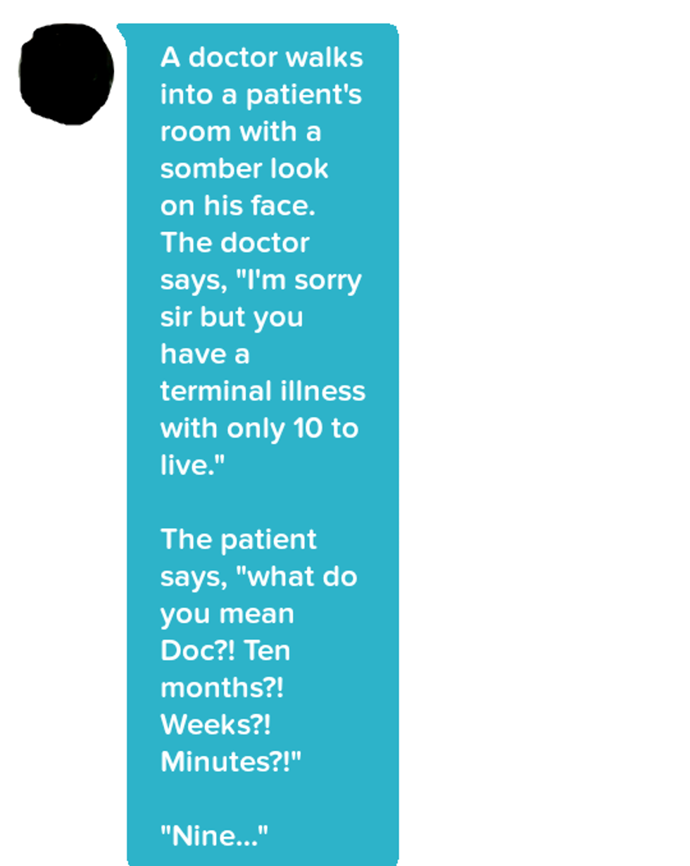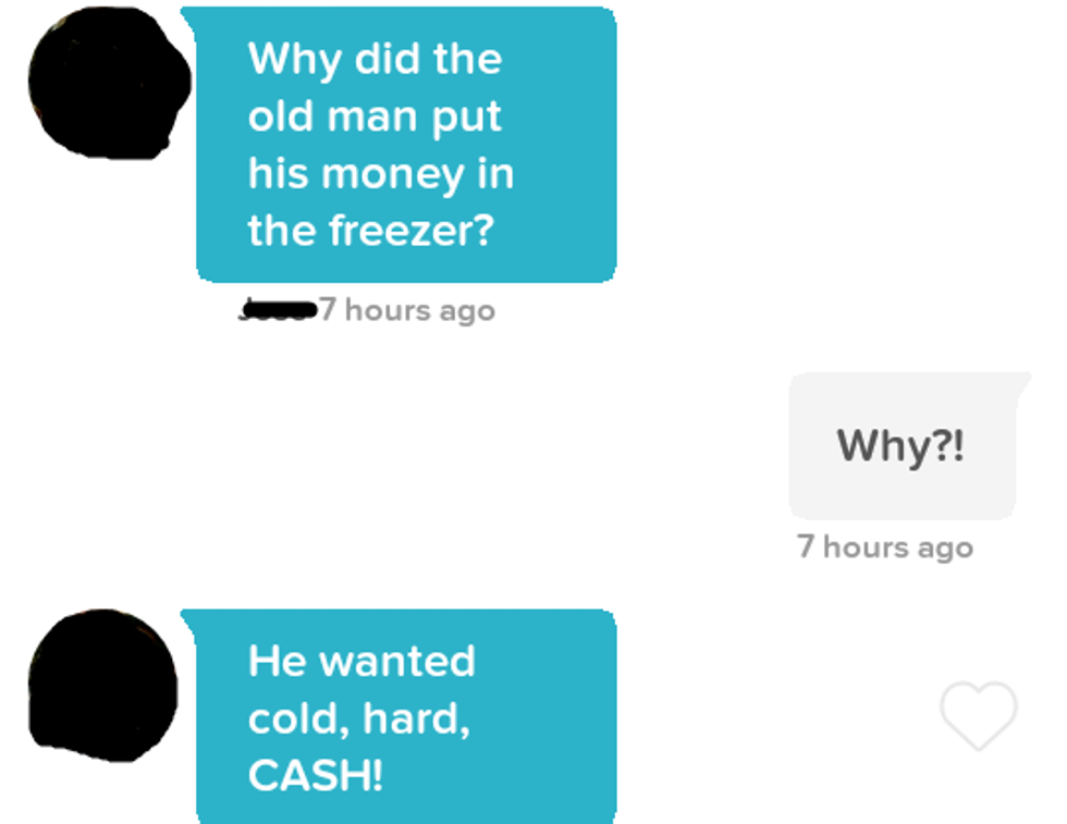 When I signed up, I put "tell me a joke" on my profile. I honestly didn't think anyone would send me a joke, but I was so wrong.