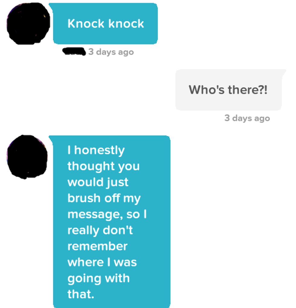 I can say that I've never gotten so many jokes in such a short amount of time. 10/10 recommend putting "tell me a joke" on your Tinder profile.
