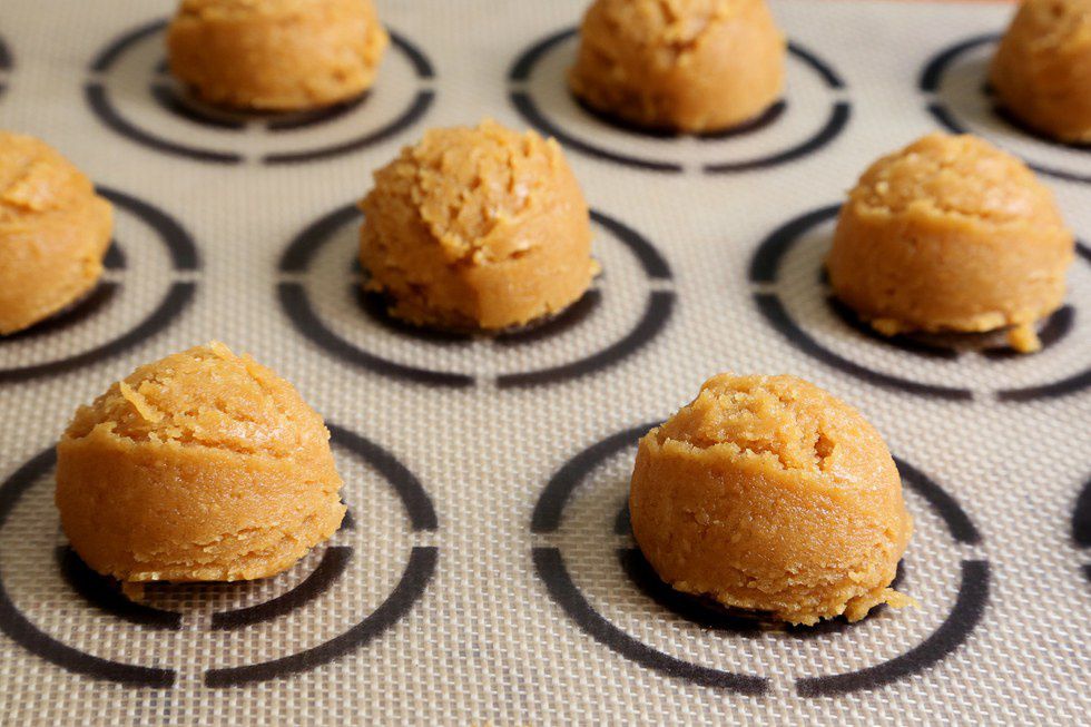 Be sure to place the balls of dough 1 inch apart when putting them onto your baking sheet. Before placing the cookies in the oven, take a fork and gently flatten them a bit. Keep in mind that you may need to place the cookies a little more than an inch apart because they expand.