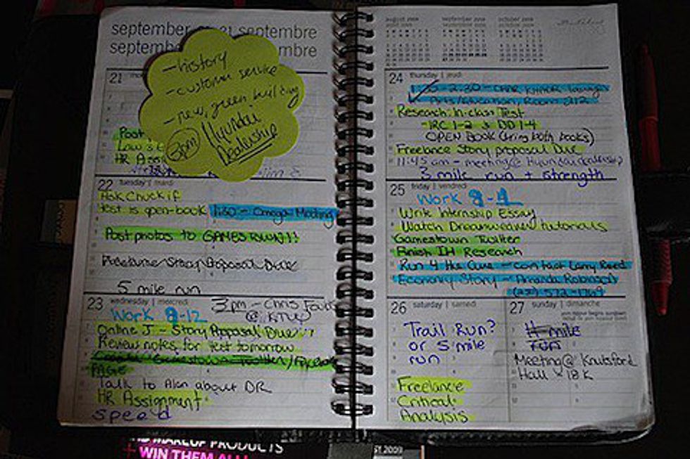 There are some tools of the trade to help you balance work and school. The most important one, in my life at least, is a planner. Using a planner saves me from chaos daily. I use it to remember homework assignments, projects, tests, club meetings, and work hours. I also use it to schedule my days and weeks, which is very important if you've got a full plate. Not all planners are created equal, however. My mother said to me once, "Don't buy something if it doesn't inspire you." Choose a planner that has a look, style, and size that makes you feel better about donating all of your time to productivity. I've found that a weekly planner works better than a monthly one for work and school. You can find nice planners at Target, but if you're willing to spend a little more for your scheduling, you can find stylish planners over at Rifle Paper Co and Kate Spade. Having a planner that feels like another part of you really helps to inspire the energy to work and study. You can also find apps on your phone to use as planners, if you're more of a tech person than paper. I use the app Handle to set reminders for myself every day and Mint as a financial planner. I highly recommend them both.