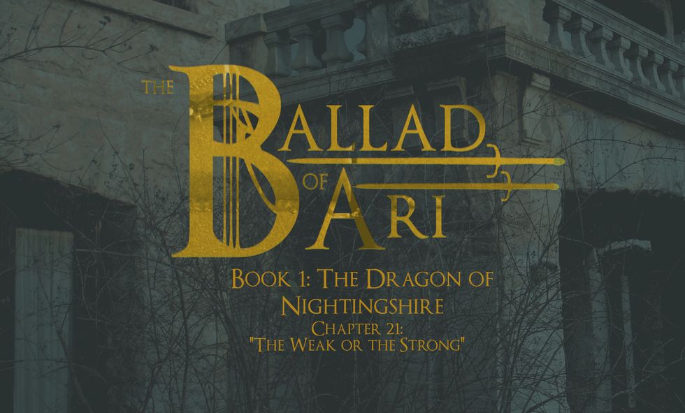 "Don a vest as well, boy," Galen instructed, and Ari picked up a small, metal breastplate from a hook above the sword rack. She put it awkwardly over her head, and naturally, the shoulders were a little disproportionate on her.