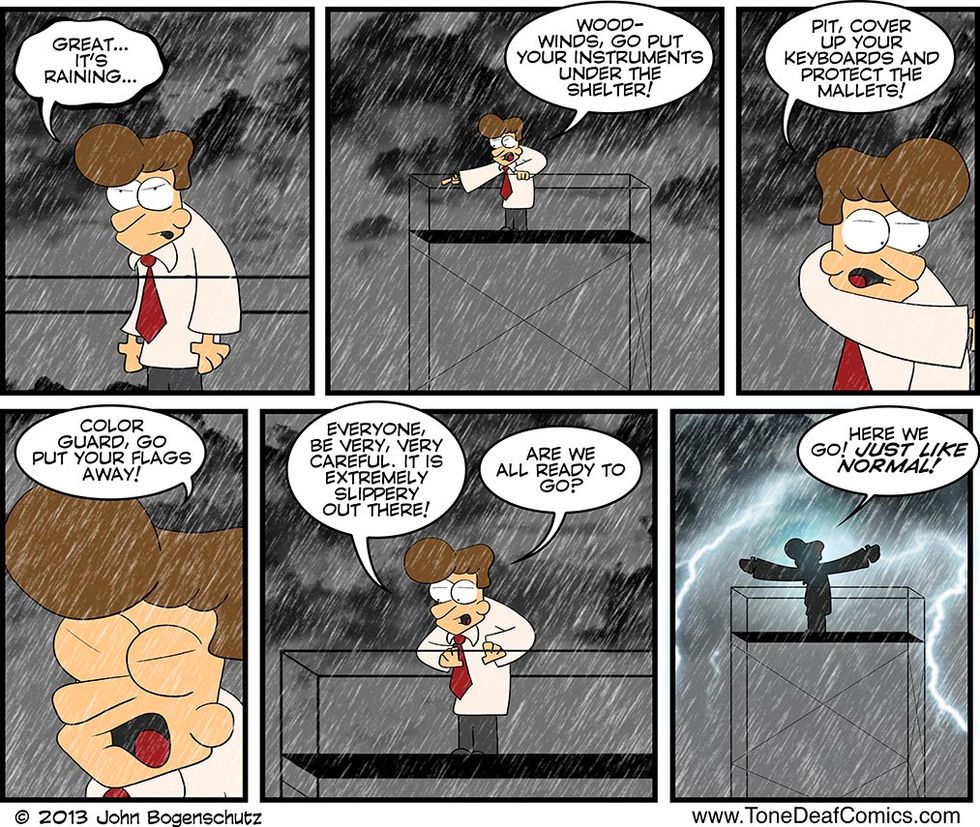 - Then having to march in the rain (sorry to everyone but the brass and drumline).