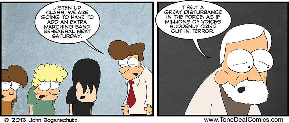 - Sousaphones wanting to strangle flutes who complain about holding their instrument up.