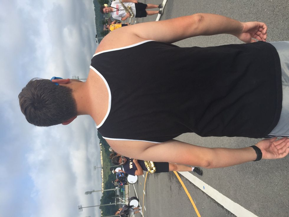 For those that don't like to take off their shirts while they march, it is very obvious when they wear a tank top the next day. They've got a goofy farmer's tan!
