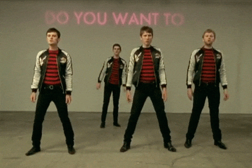 When I'm in the mood to listen to something... unique... Gorillaz (also from England) is absolutely my go-to. I first heard "Feel Good Inc." in fourth grade and once I excitedly received Demon Days as a birthday gift, there was no going back. For those unfamiliar, there are four animated characters that make up the band- 2D, Murdoc, Russel and Noodle, who can be seen dancing around her bedroom in the GIF above. Behind the scenes are Damon Albarn and Jamie Hewlett. Stylistic genres include alt-rock, electronica, and hip-hop. Check out the video for "Stylo" featuring Bruce Willis:
