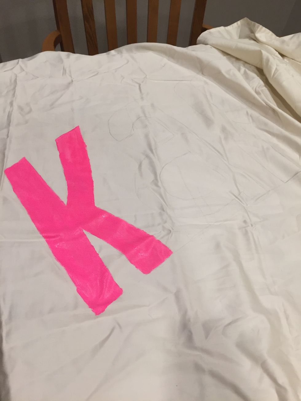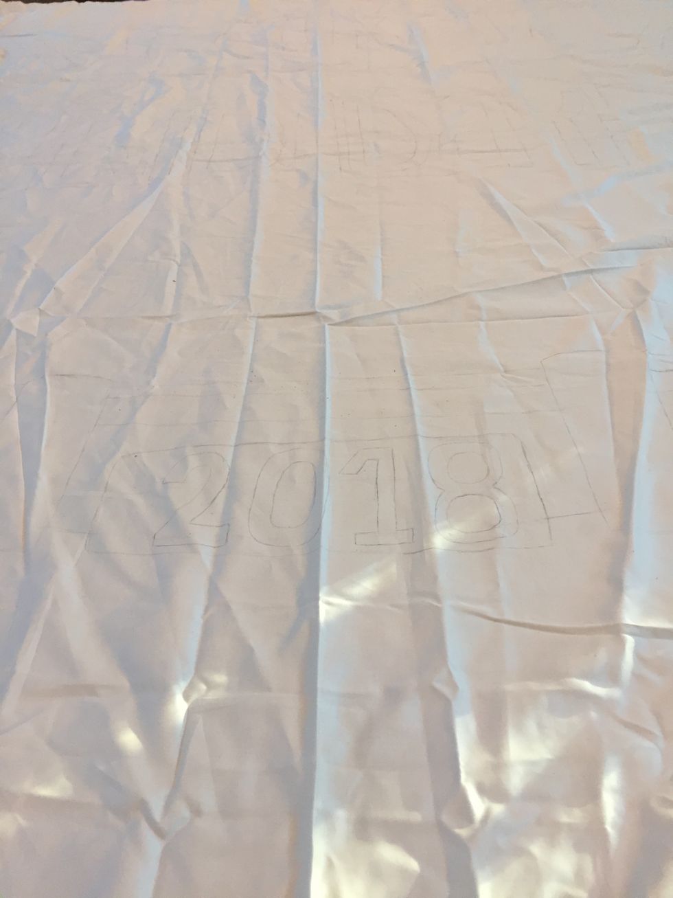 I had to vacuum my floor three times to get up all of the eraser shavings. At this point with a canvas this size, it's a little hard to find stencils that work. Unfortunately for everyone involved, I free-handed my banner which induced enough stress to take 30 years off my life.