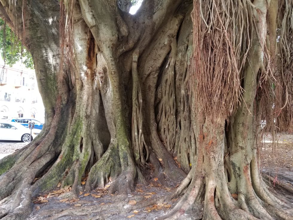 Seeing this unique, magnificent tree was nothing short of an honor. An accidental honor that we had stumbled upon, a jungle tree thriving in the middle of a city. Tall sparkling hotels and condominiums stood as an odd backdrop for the tree, but the tree seemed proud to be there and call the city it's home.