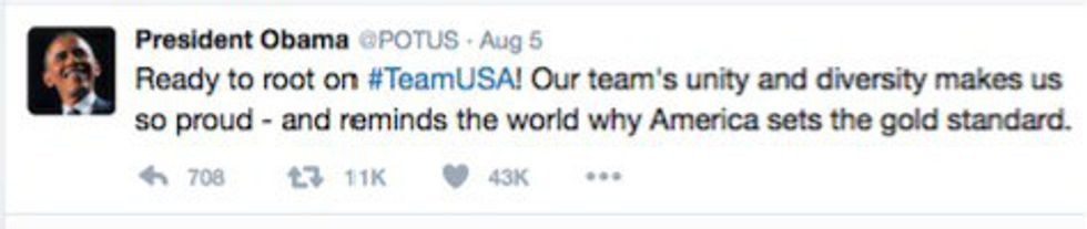 14. President Obama stands proud with #teamUSA. Not only because they crushed it at the olympics this year, but because the diversity that was shown.
