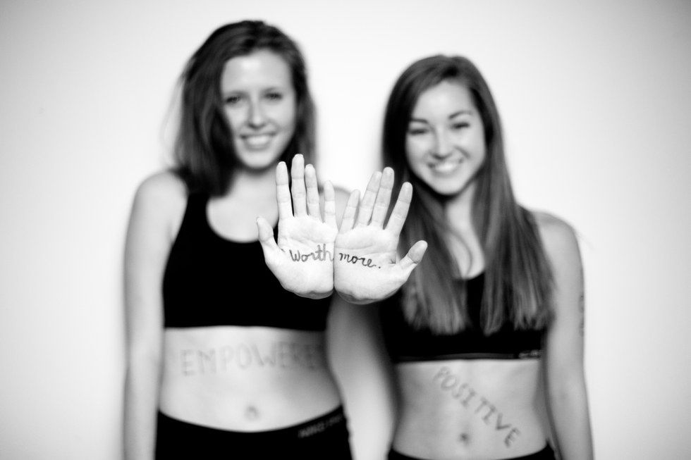 "Our goal with the 'Bare it All' Photography Project was to encourage ourselves and others to love and accept ourselves and our bodies. By writing words on us like "strength," "passion" and "confidence," we wanted to demonstrate that beauty is not about our bodies, but about these human qualities that lie beneath. Stepping in front of a camera and exposing ourselves like that really challenged us to embrace our bodies and adopt this idea that someone's worth isn't defined by appearance, but who you are as a person. To me, this message we're trying to promote strikes a chord with everyone, and is so relevant with college kids especially. If we could shift the value of beauty away from just one's appearance, we may begin to see the beauty in all of us."