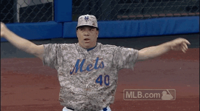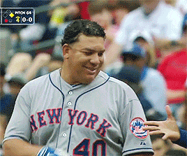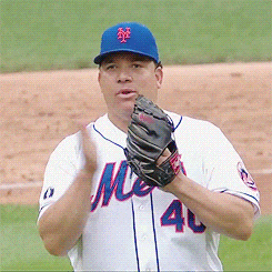 The "Big Sexy," as Mets Pitcher Bartolo Colon is affectionately known, is one of the most beloved players in baseball. As the oldest player currently in Major League Baseball at age 42, Colon is a baseball icon. He's also one of the most gif-able players in the game, and that's one of the reasons why we love him. Commissioner Manfred, according to MLB.com, cited his on-field antics for defense of the NL's lack of a designated hitter because it would "deprive us of the entertainment that Bartolo Colon has given us."