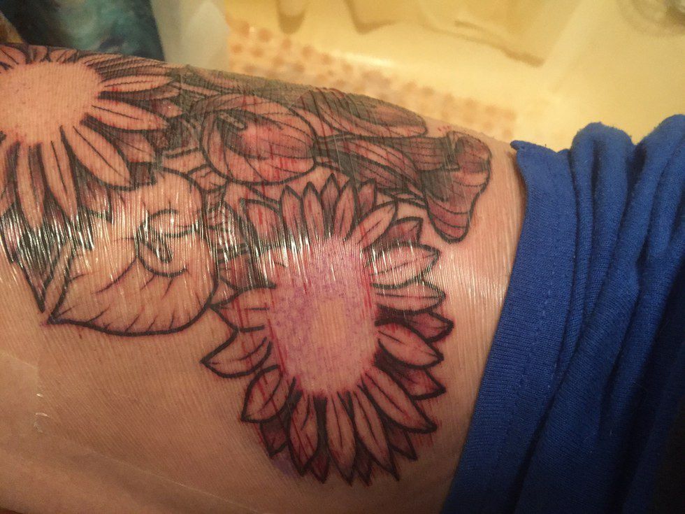 The basic mechanic of a tattoo is a needle repeatedly stabbing into your skin. The process itself damages the epidermis, the epidermal-dermal junction, and the topmost layer of the dermis. These cells are then homogenized. The ink then diffuses into the upper dermis. The ink is absorbed by keratinocytes and phagocytic cells.The response to the damage is bleeding, swelling, and an immune response occurs. The skin is then repaired and regenerated by fibroblasts, which form scar tissue skin.