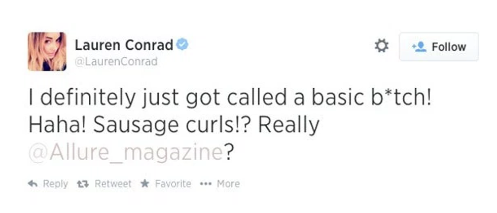 In a Cosmopolitan interview, The Hills star and DIY queen Lauren Conrad fired back at an accusation from Allure magazine of her being "basic". Conrad spoke for all of us when she said "I probably am pretty basic. But I'm also a pretty happy person, so that's OK with me." Preach LC, preach.