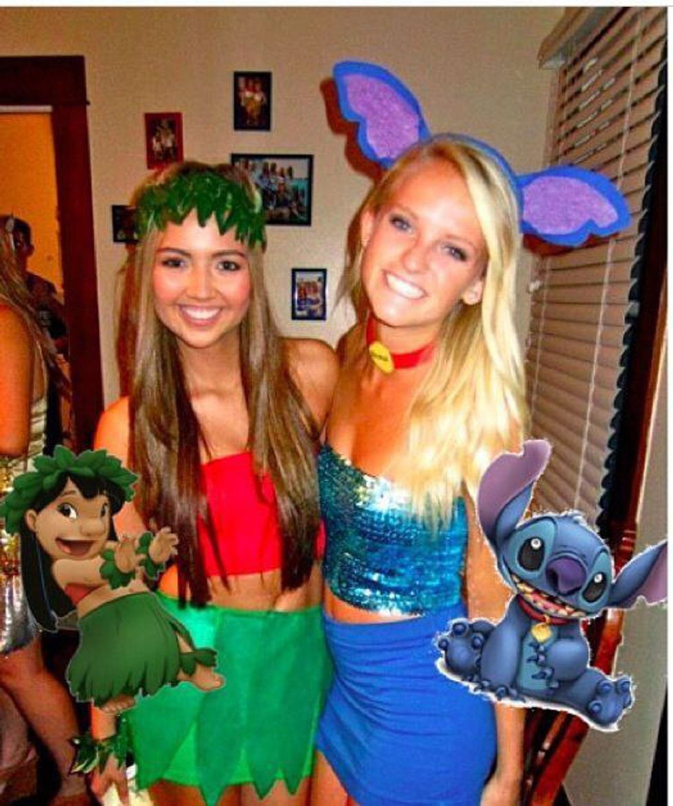 I saw a surprising amount of Lilo and Stitch costumes this year... a Disney classic that I'd never even thought about doing. Fairly simple: one person wears a red crop top and grass/green skirt/shorts and the other wears blue and maybe throws on some blue eyes. Still basic.
