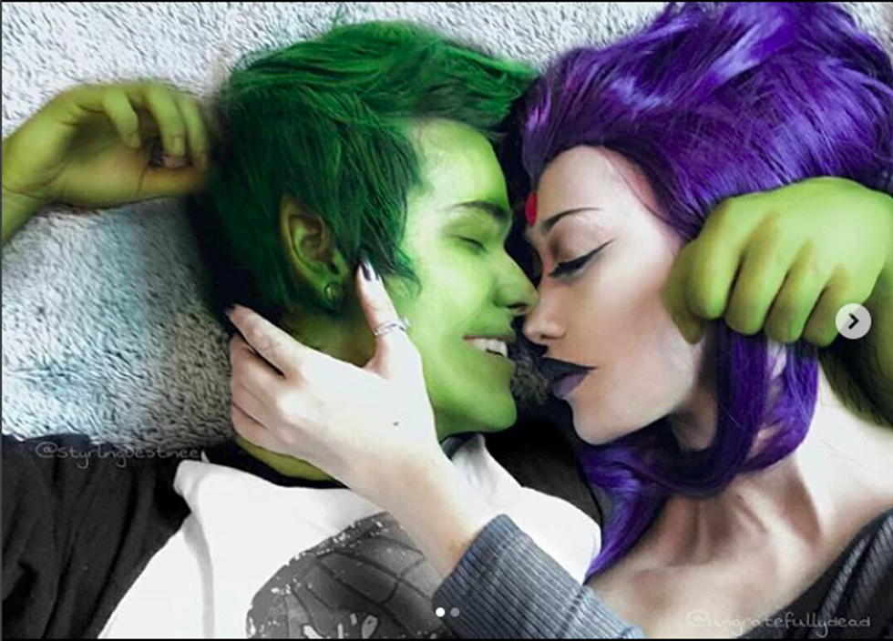 Couple costumes are the worst to me...besides this one because Beast Boy and Raven are the ultimate ship. But going out to a haunted house and wearing couple costumes is excessive and kinda basic. It's for attention. Just go in normal clothes and shit bricks as you get scared.
