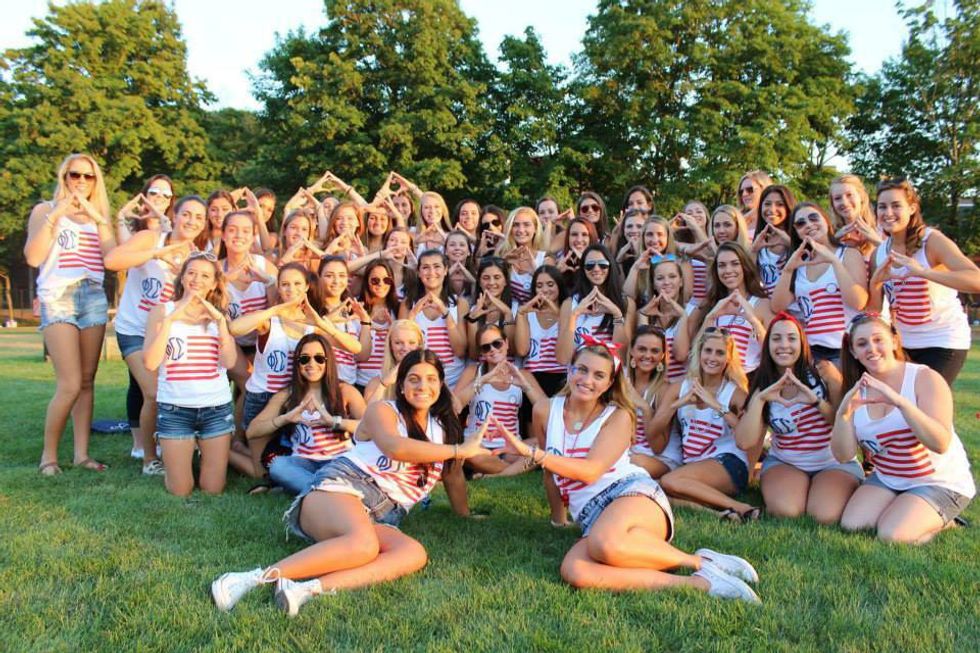 With informal recruitment starting up, many more QU sorority chapters are participating than usual. I thought it would be helpful for people thinking about joining a sorority to have a rundown of the basic information about each of the chapters here on campus. Keep in mind that this is not a list of stereotypes or ins and outs of each chapters; your involvement in a particular organization says a lot about the course that the chapter will take as a whole, but it's definitely not fair to stereotype each of the chapters. Instead, I'm going to give you the very basic information about each, just as a starting point. Happy recruitment!