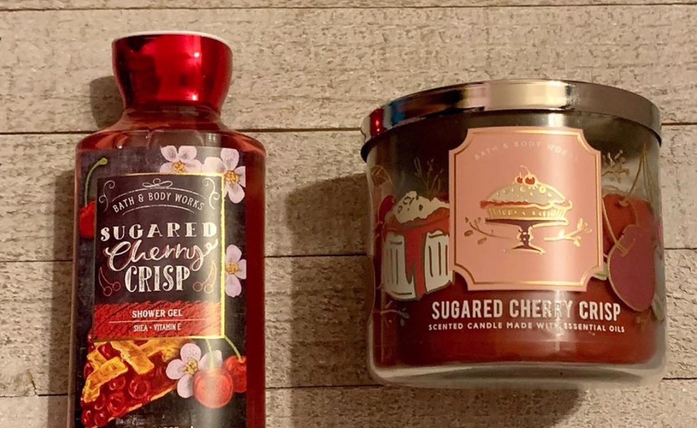 It smells exactly like cherry pie without being overpoweringly sweet. It includes notes of bright cherry, graham cracker, and spun vanilla sugar. It is available as both a three-wick candle and body care.