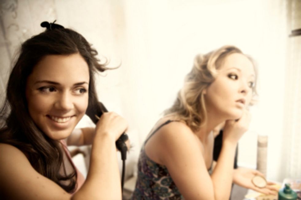 Everyone has to share. If one person is say doing their makeup or brushing their teeth for what feels like forever and another roommate has to pee, maybe you need to re-think your 'getting ready' schedule. It does suck, but now that we are in college, one does not get the luxury of taking up the bathroom for 30 minutes or more.