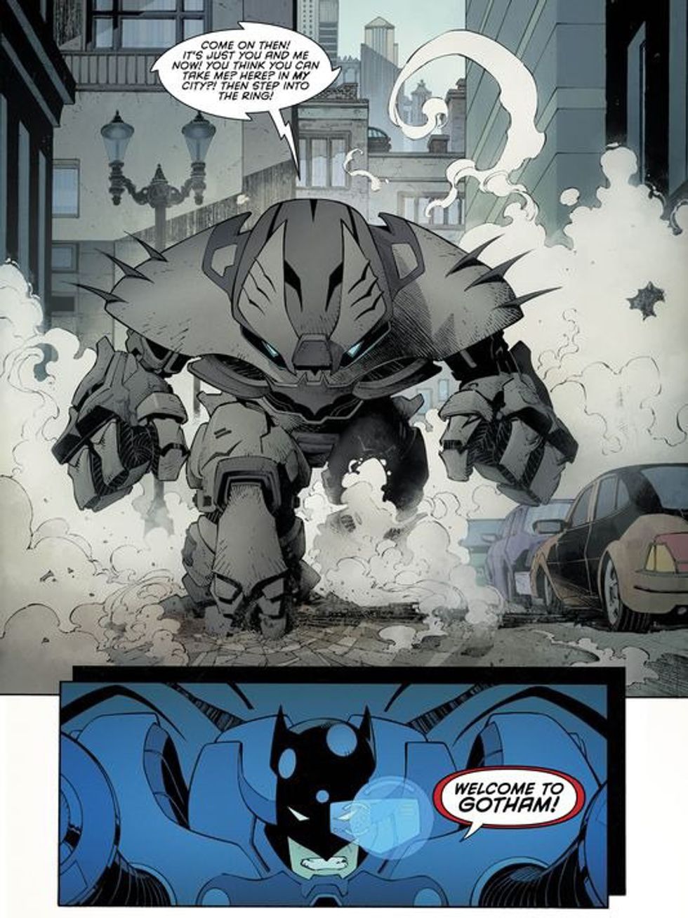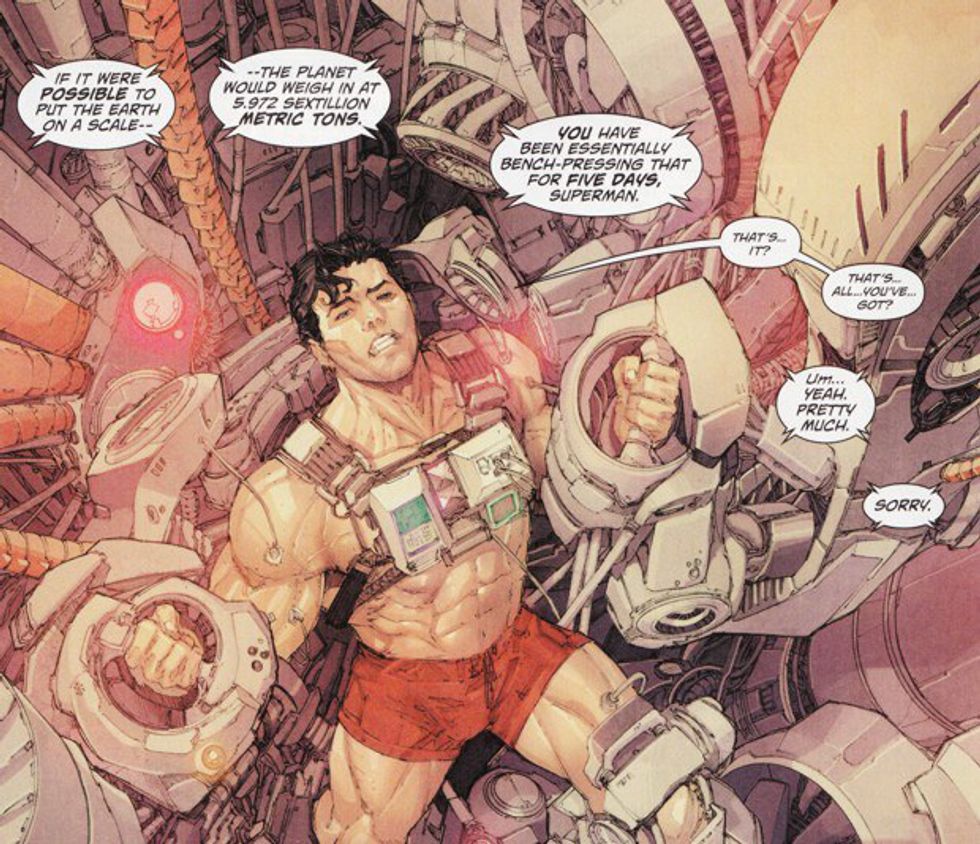 He is indeed super. Superman has super strength and in often cases has to pull his punches as to not kill his enemies. This being said, Batman can have an armored suit all day long, but Superman could easily tear these suits apart. That part about Batman’s “Justice Buster” suit in the "Endgame" story? I might have left out the next panel where Clark crumples the right should of the suit… Whoops. Superman is so strong that in Superman issue 13 he put himself in a machine that duplicated the weight of the earth, then proceeded to bench-press said weight for five days. You might be in trouble, Bats.