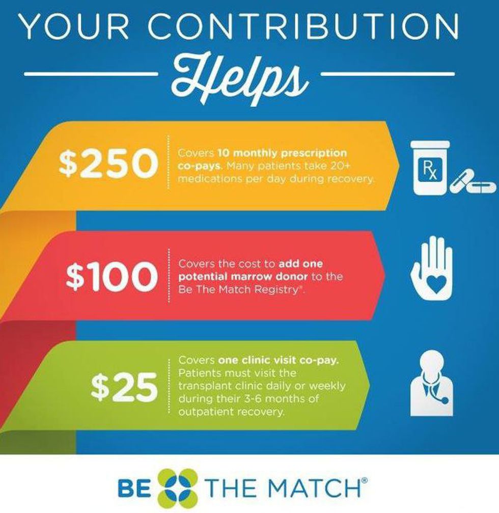 Donors are carefully pre-screened to ensure that they are healthy and the procedure, whether it’s bone marrow or blood given, is safe for them. Donors also never pay to donate marrow, all travel costs are reimbursed and all medical costs are covered by Be The Match. We rely mostly on financial contributions and the willingness of others to keep our organization going, a method which has treated us well since our beginning.