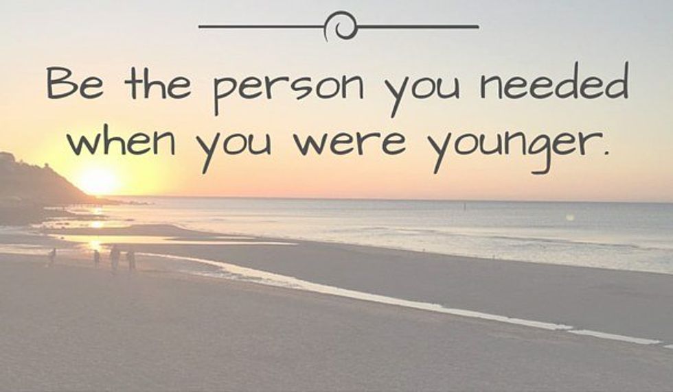 Many of us who read these articles are twentysomethings, and early thirtysomethings, which means we're in our fun-filled college years, or recent (or fairly recent) college graduates starting our professional careers, trying so hard to desperately find our way in life without losing our youth. We're not perfect, nor do we try to be. We make mistakes, lots of mistakes, and, better yet, we're wildly open about them. We know we don't have it all together, but we try to make our lives what we want them to be: adventurous and meaningful and full of memories. So when I came across this quote on Pinterest a few months ago (or, was it Instagram?) it really hit me. Hard. Be who you needed when you were younger.