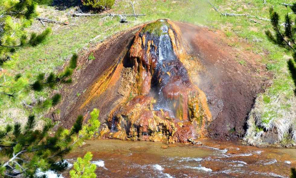 Iron may be caught on the bacteria and mat filaments, as the Chocolate Pots' iron concentration is 100 times greater than at other geographical features in Yellowstone.