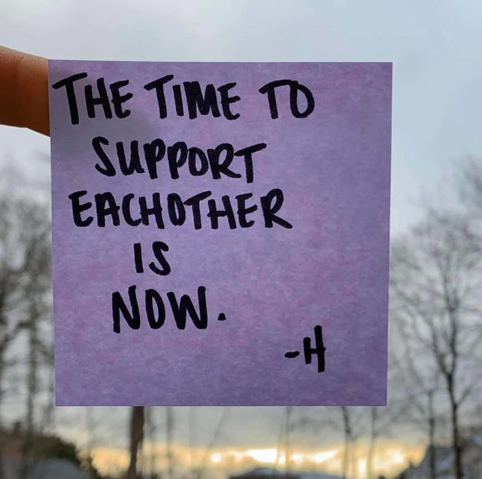 The time to support one another is now. And tomorrow. And the day after that. And for always after that.