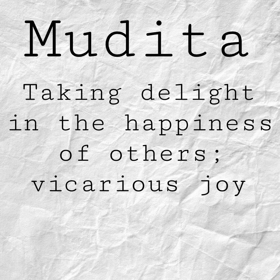 {Pāli, Sanskrit} (n.) taking delight in the happiness of others, vicarious joy