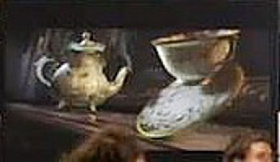 Keep in mind that the picture is in low-resolution. Now, unlike Lumière and Cogsworth, this is a concept art of Mrs. Potts and Chip, meaning they could look much different in the final film. And I really hope they look different from this artwork. It looks like Mrs. Potts and Chip have very boring designs that are just white and a little bit of coloring on them (Green for Mrs. Potts and gold/yellow for Chip). While these two were white in the movie, they were still engulfed with purple and yellow colors. I also have different problems with them. Chip might be too big. Mrs. Potts is still bigger than her little son, but he is still pretty big. The animated movie has the right scale with them. Chip is very small in the movie to emphasize with his age. Here, Chip may be too big for such a little kid, even though he's a cursed human child. On the other hand, Mrs. Potts has a face problem. You can see Chip's smile by his handle and it works because it reminds me of Chip in the movie. Plus, it looks like direct paint that you see on objects. You can clearly see Mrs. Potts's face here. It is in the right place in the design of the character, but I don't see the face as appealing as Chip. It find to be creepy because it looks like it's directly photoshopped/glued on the pot. I really hope it looks neat and natural in the final film.