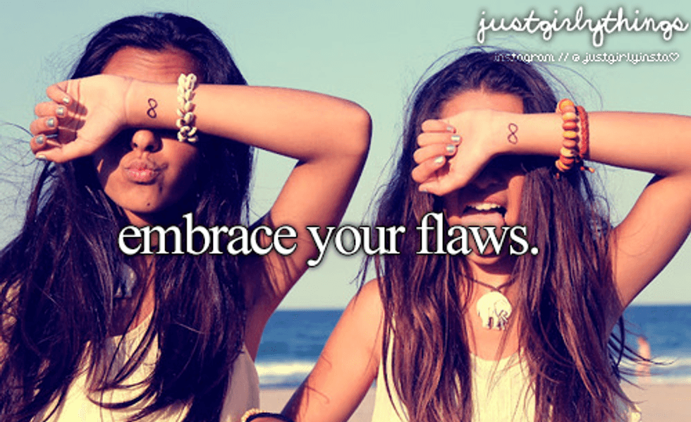 It is comforting to know we can turn to makeup in times of these blemish crises, but there's something to be said for those who can recognize their flaws. I'm talking more than zits now. It's important to understand your imperfections and learn to live with them, rather than let them live your life for you.