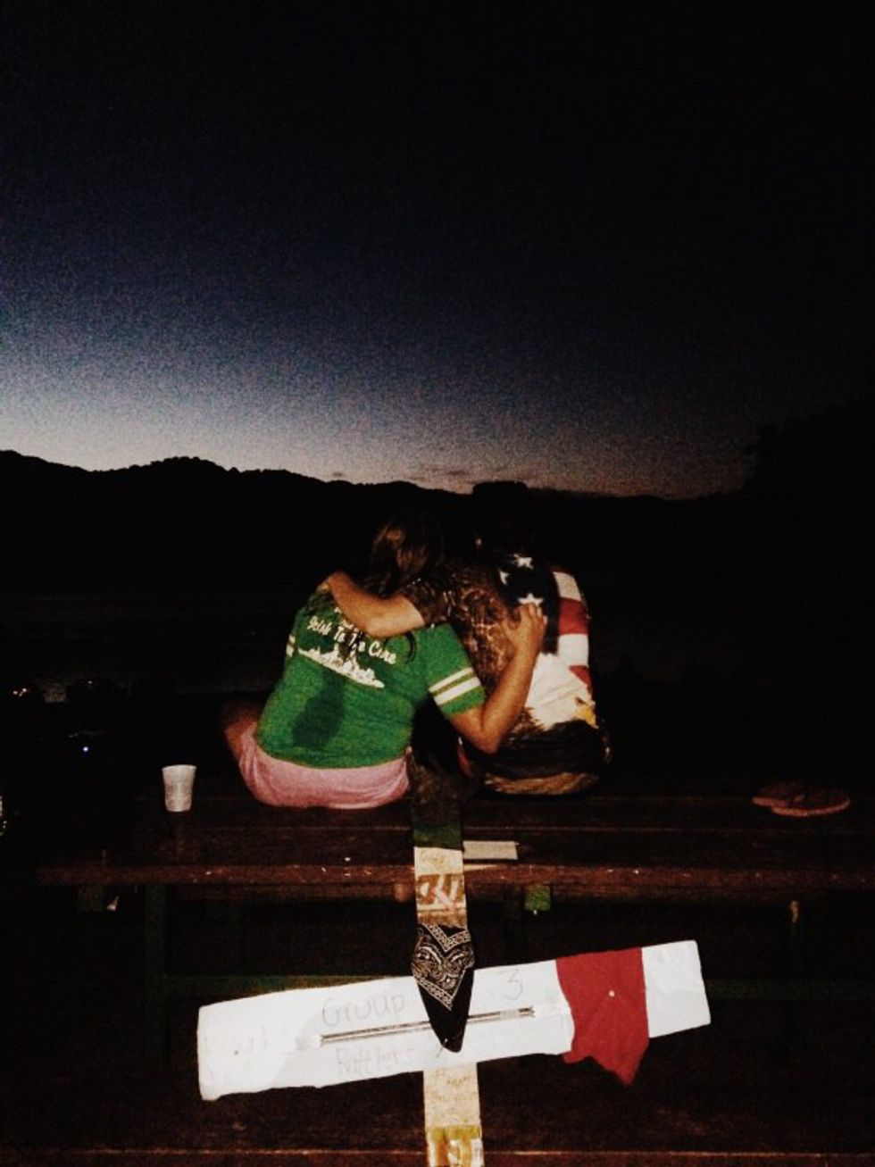 My friend, Abby, had also been asked to reflect. Afterward everyone was handed a pen and a note card and given the opportunity to sit and reflect on the week. Already having written a reflection, Abby and I sat next to each other on the top of the picnic table and looked out at the lake while the sky turned from blue to black. I don't know what Abby was thinking about but at some point, I heard her sniffing and looked over to see her crying. I too had tears streaming down my face. Naturally, I put my arm around her, rubbing her back. We leaned on each other for comfort.