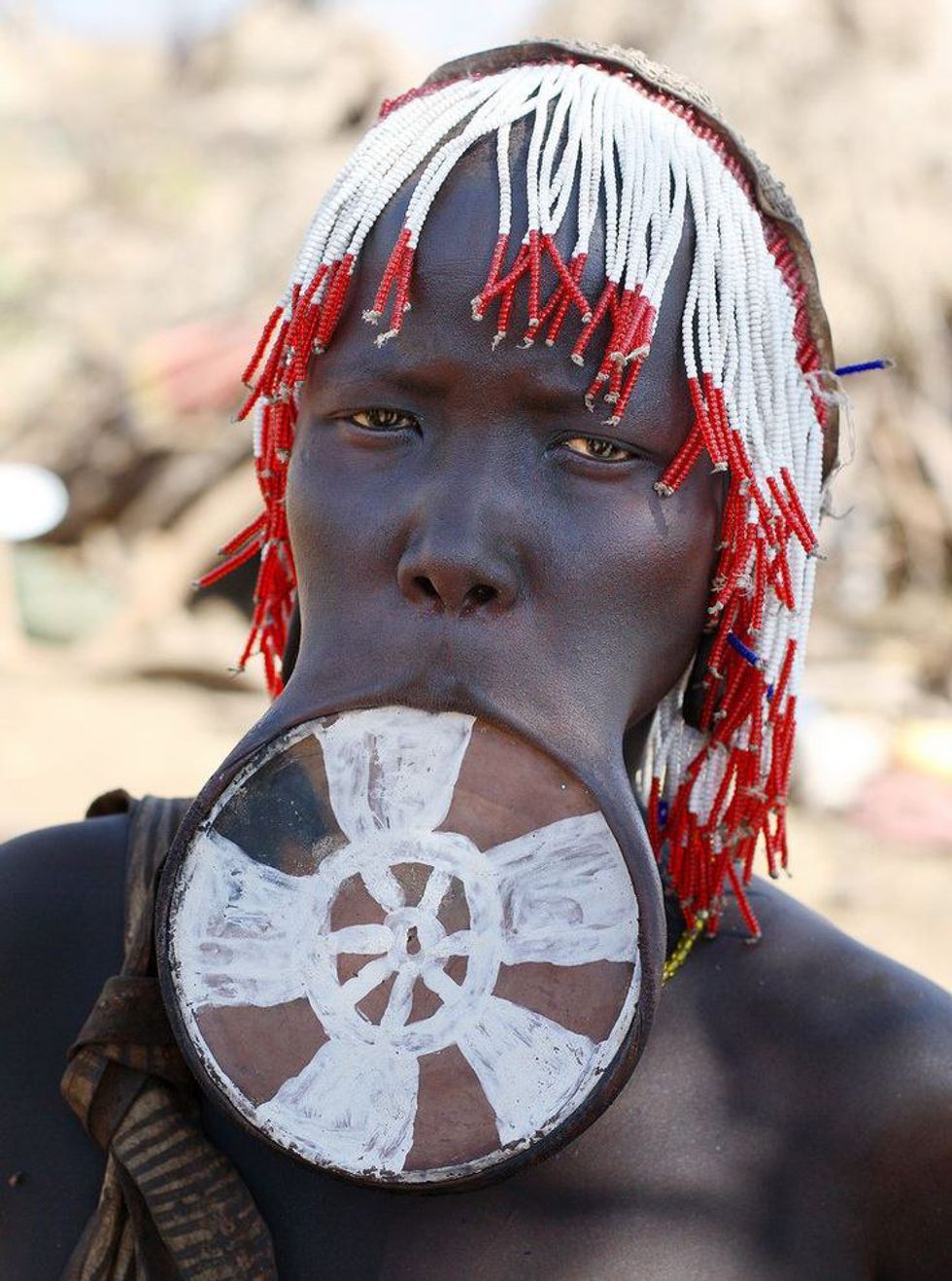 This sacred ritual has a few possible origins but the true beginning of this custom is unknown (to the internet world, anyways.) Some theories is that this custom made women and younger girls unattractive to their slave masters to prevent sexual advantages or violence. Another theory is the larger the lip plate the higher social class the women belongs to. This makes me wonder if there has been any issue with infection with this practice... but nonetheless this ritual is still practiced today.