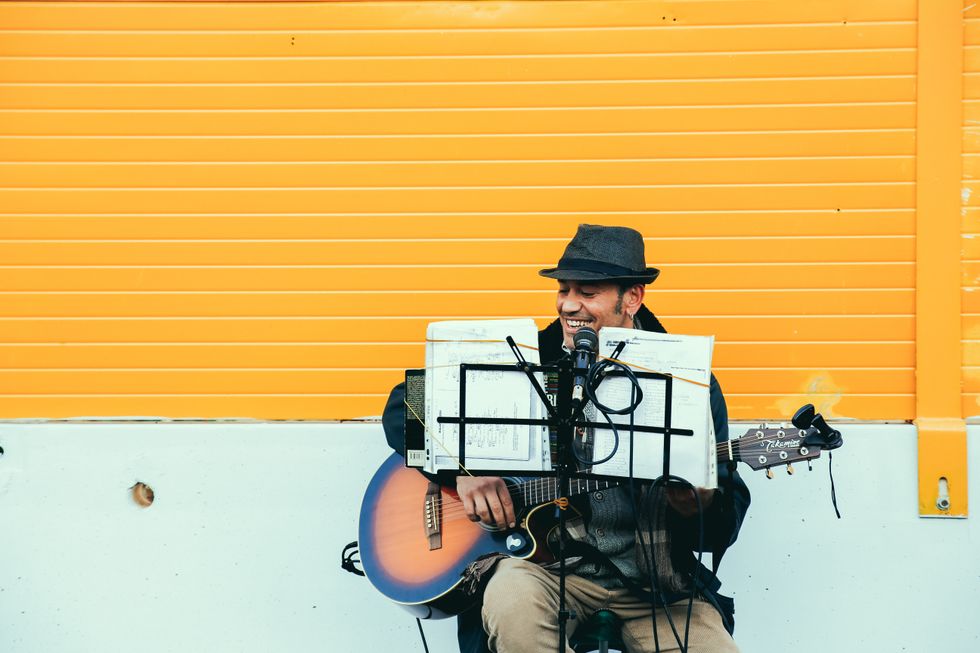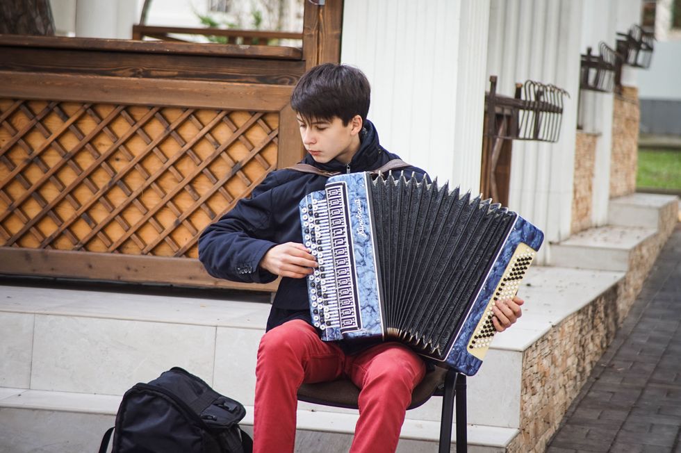 He loves playing the drums, guitar, and even the accordion. He loves what he does and music is what sets his soul on fire and inspires him to go outside and play for passer-byers on the street.