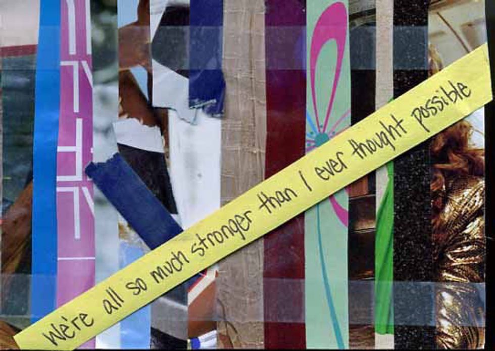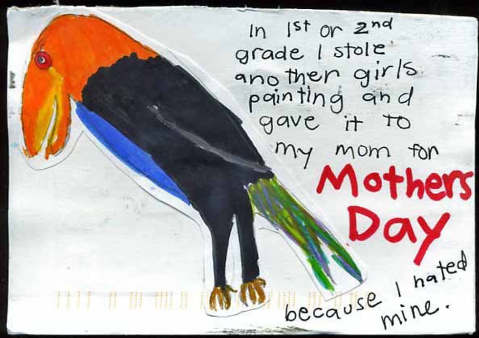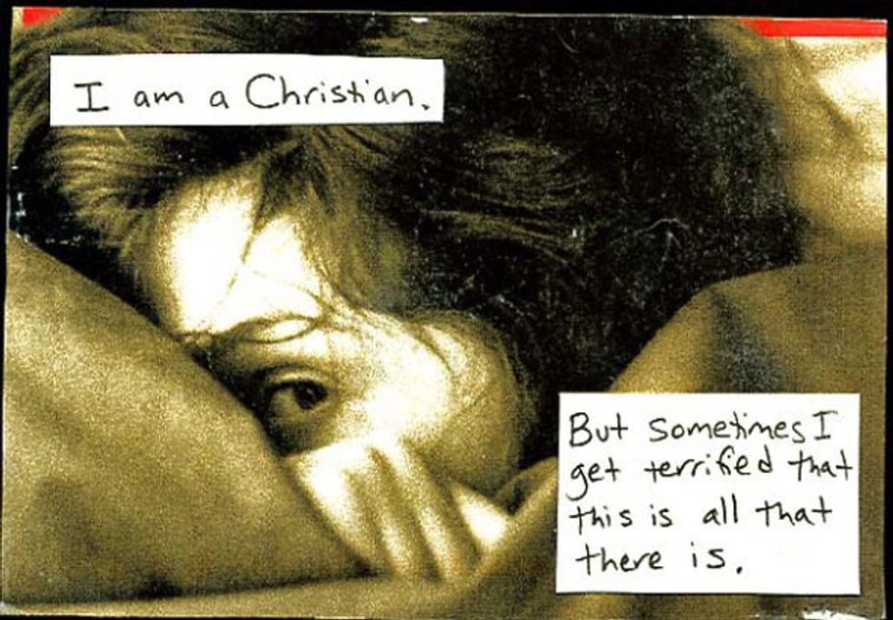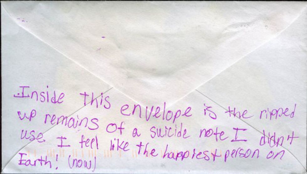 Every Sunday, Frank updates his blog with new secrets, and every Sunday, I take them in, filled with deep admiration, sometimes joy, sometimes sadness. These secrets are poignant, funny and heartbreaking. Sometimes I find a secret that speaks to me, and I feel a bit less alone in the world. That, I think, is the beauty of PostSecret. It connects us by our secrets, reminding us that the things we are feeling and keeping are not only felt or kept by us. We are not as alone as we often feel.
