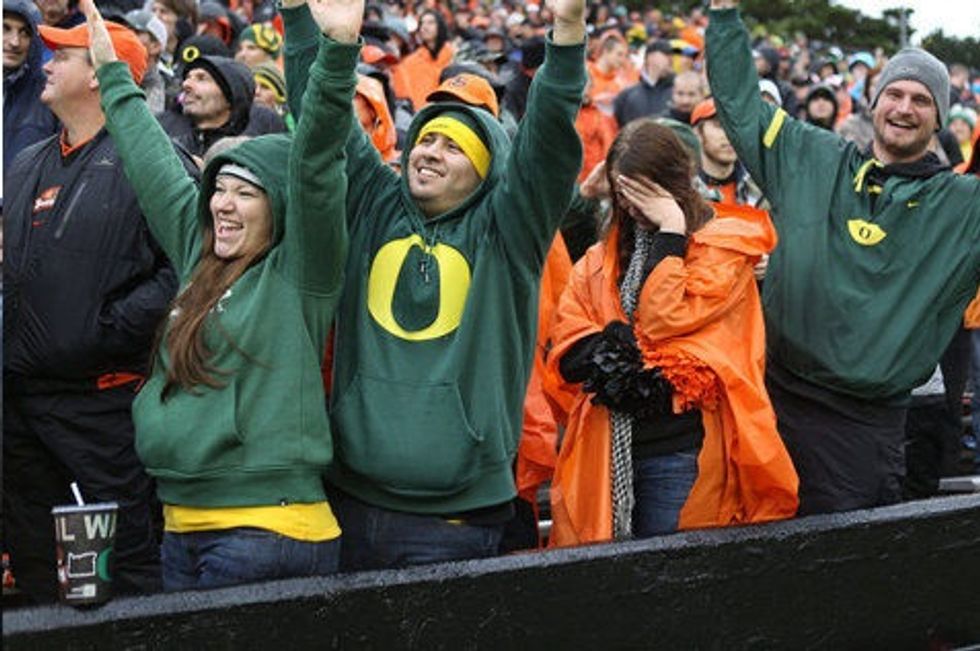 People we meet when we are out of state will say something like, "Oh, you go to college in Oregon? Go Ducks!"