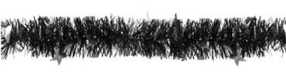 Party City. Chain link: $2.99. Thick garland: $3.99. Black tinsel: $5.99. Furry Ball garland: $6.99