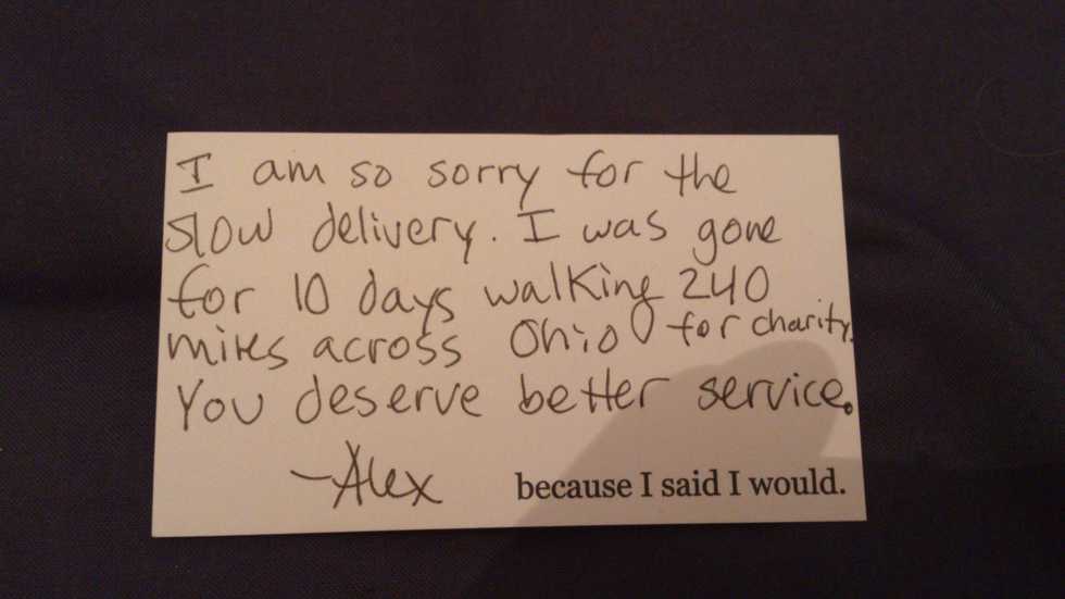 But it was about more than just promises. It was about helping others and doing what is right. He spoke about raising money for kids with cancer, and walking 240 miles across Ohio for 10 days for three girls- Michelle Knight, Amanda Berry, and Gina DeJesus, who had been kidnapped and held captive for 10 years. And he did all these things, raised all this money, simply because he said he would.
