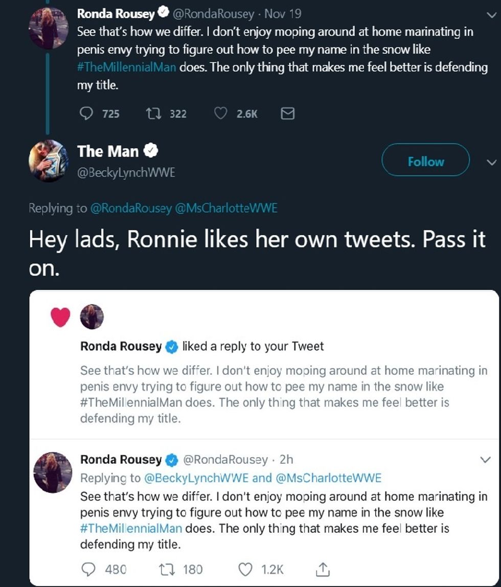 The ring isn't the only place Becky entertains fans. Her social media presence is just as entertaining. She remains in character and engages in banter with others.