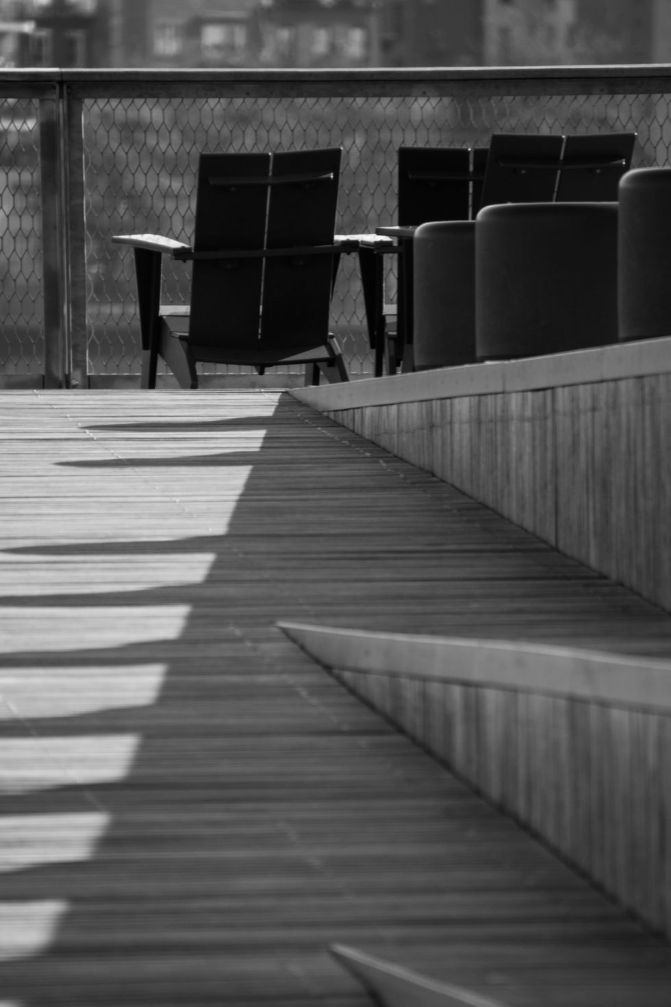 The lack of color in the picture originally is what prompted me to switch to B&W, but it still is a good example of how a lack of color can highlight lines and shape. The separation between light and shadow becomes sharp and distinct.