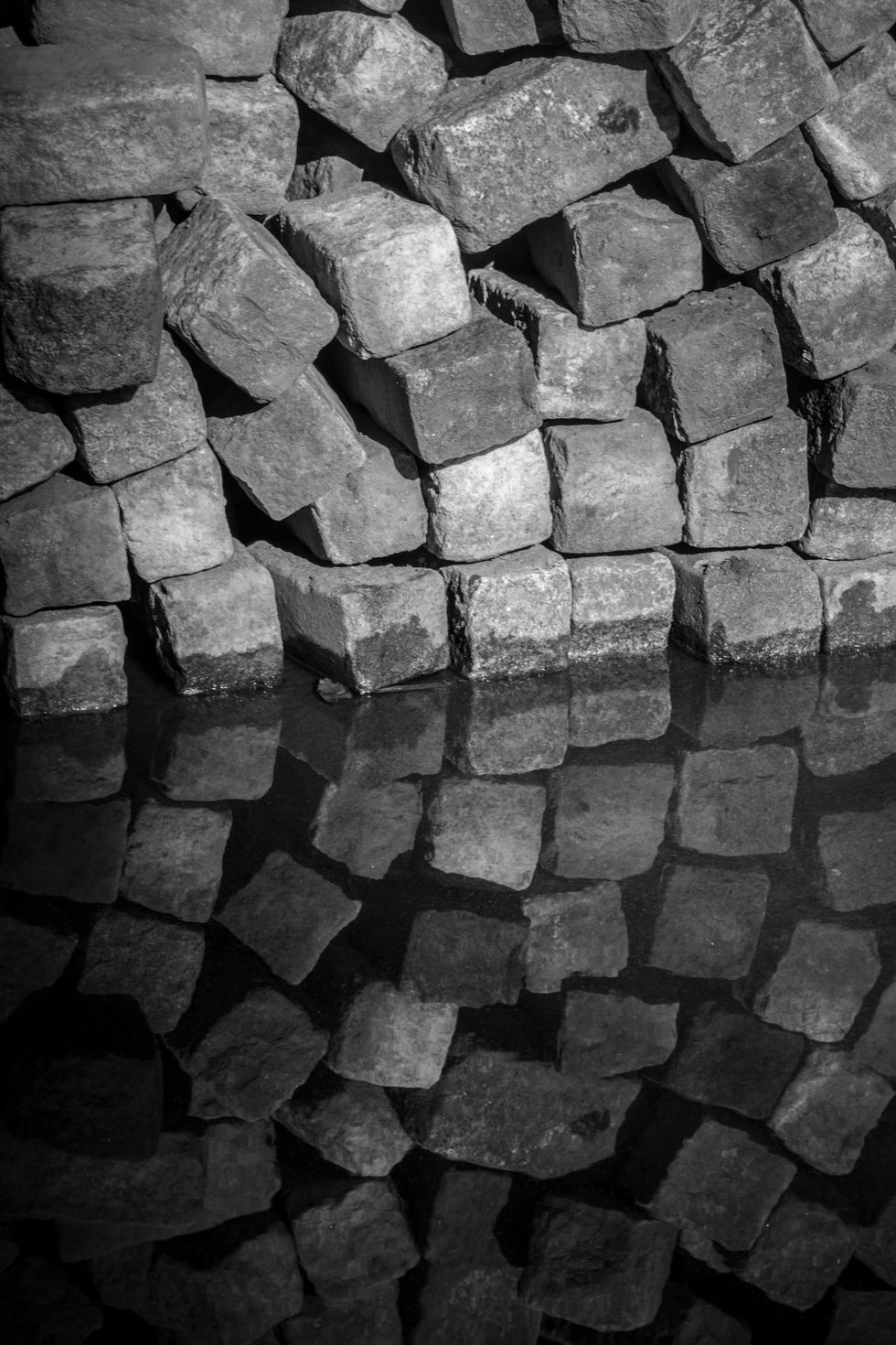 Black and white can sometimes reveal the true potential of a photo. The sandy color of the cobblestones didn't mix well with the overcast day and brown, muddy water, but by removing the color and boosting the sharpness and contrast, the texture of the cobblestones pops out, and you look more at how they're stacked and how the reflection shows small ripples in the water. Details that would be overlooked otherwise. If you're editing a photo, and it just doesn't seem right, try switching it into B&W.