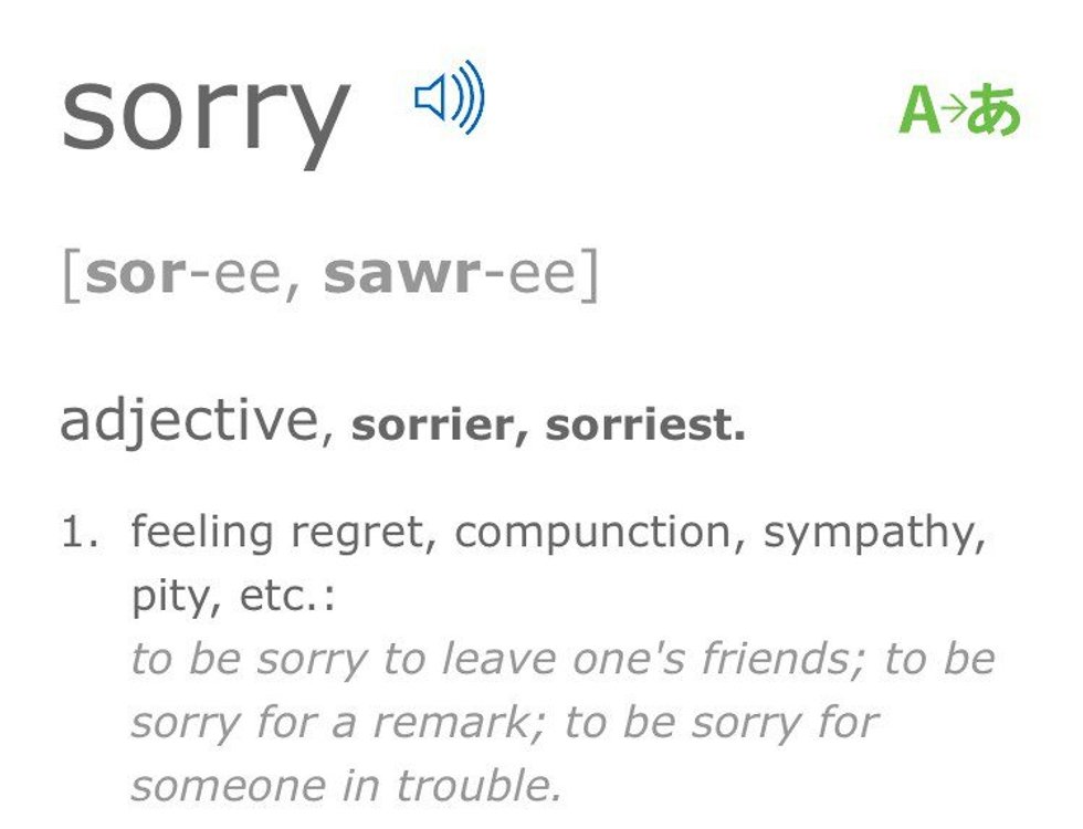 I'm not saying the word sorry is unnecessary, because it is important to be able to realize when you are wrong. And I'm not saying to never apologize, everyone needs a little humility in their lives. But in order for real apologies to have meaning behind them, the word sorry cannot be thrown around so flippantly. It takes the meaning away. Apologize when you caused a negative consequence, not when you perform a small, daily task.