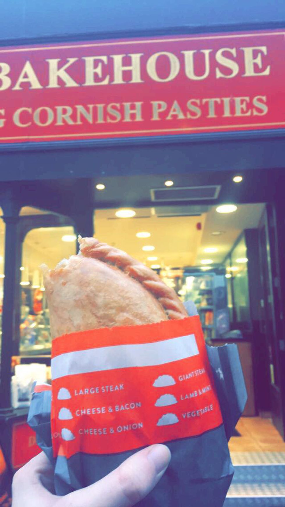 It has only been two week since I've been here and most of my meals I've cooked in the kitchen of my apartment, but I have tried the English pasty. My favorite so far has been the basil, tomato, and cheese filled one. I'm hope to find good Thai food and Fish & Chips soon!