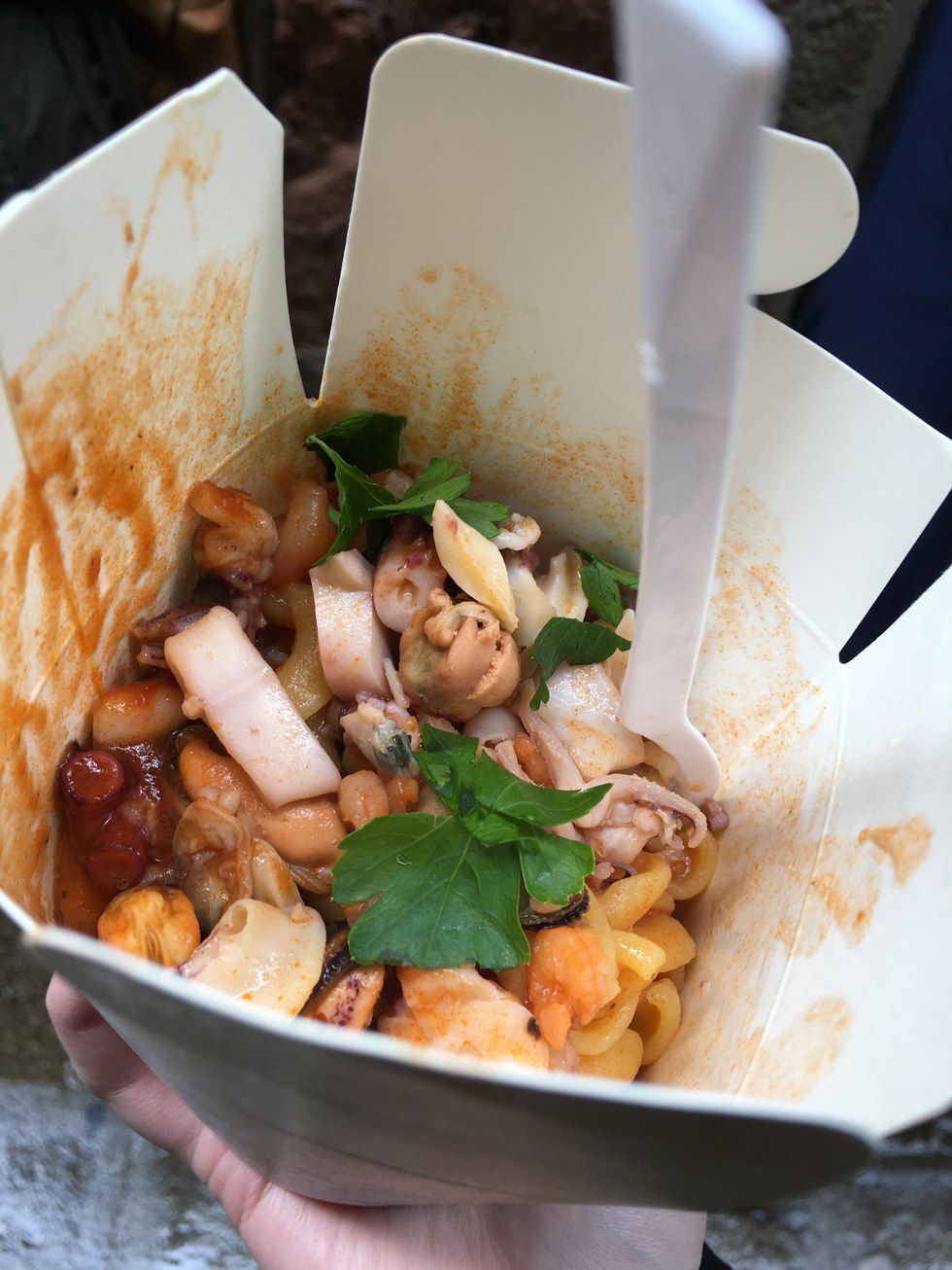 You are in Italy so eat up! There is no going wrong when you’re trying to find something to eat. Be sure to eat the pastas and pizzas. I really enjoyed the seafood, and don’t forget the gelato! They charge extra if you sit and eat. There are some really great take away places, and I highly recommend Alfredo’s Fresh Pasta To Go. It is delicious fresh made pasta with different choices of toppings and the most expensive choice will cost you about 7 euro.