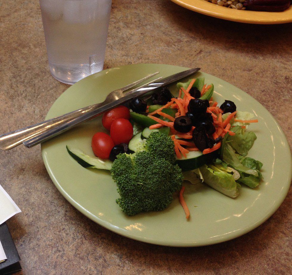 Reality: There are a lot of options, but none of them are particularly healthy. A few months ago, I became vegetarian; so, I am very thankful for the delicious salad bar they offer during lunch and dinner and the wide variety of fruit during the morning hours.