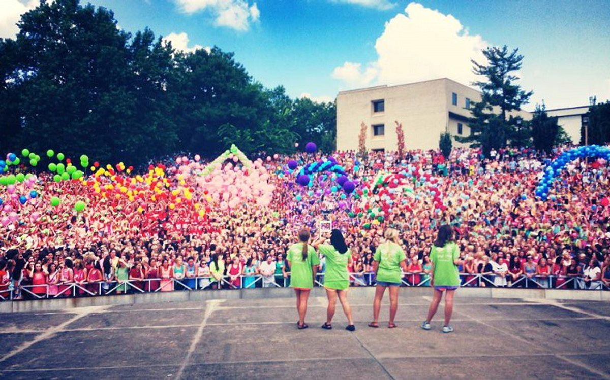 The thrill of Bid Day is absolutely unimaginable. The girls that you have already claimed as your little will be welcomed, a ridiculous amount of pictures will be taken, and most of all the laughs and smiles of your new sisters all around you is exhilirating. It makes everything SO worth it, keep that in mind while you’re going through recruitment and it might just brighten up the situation.