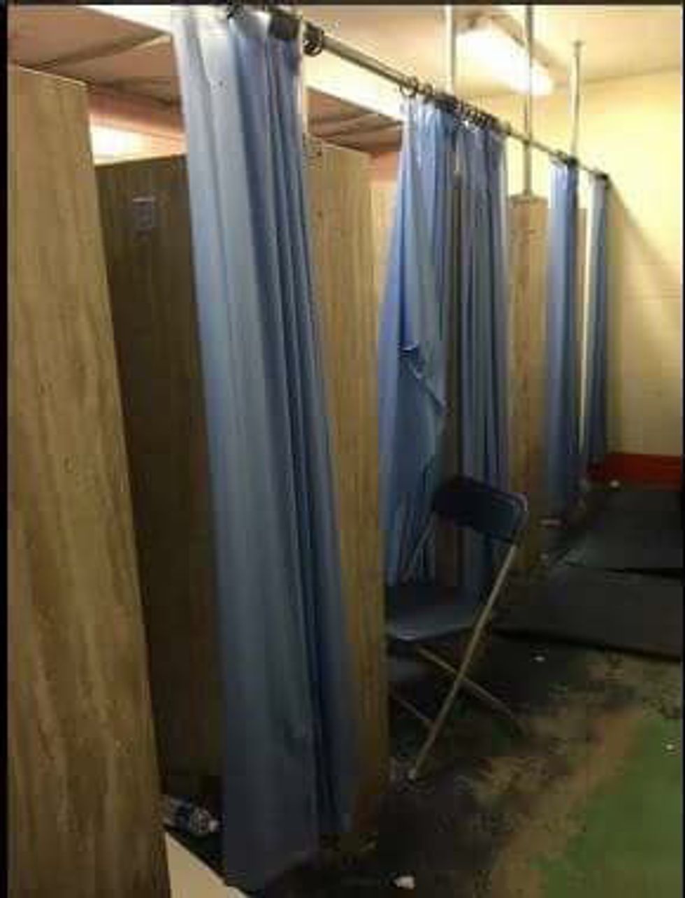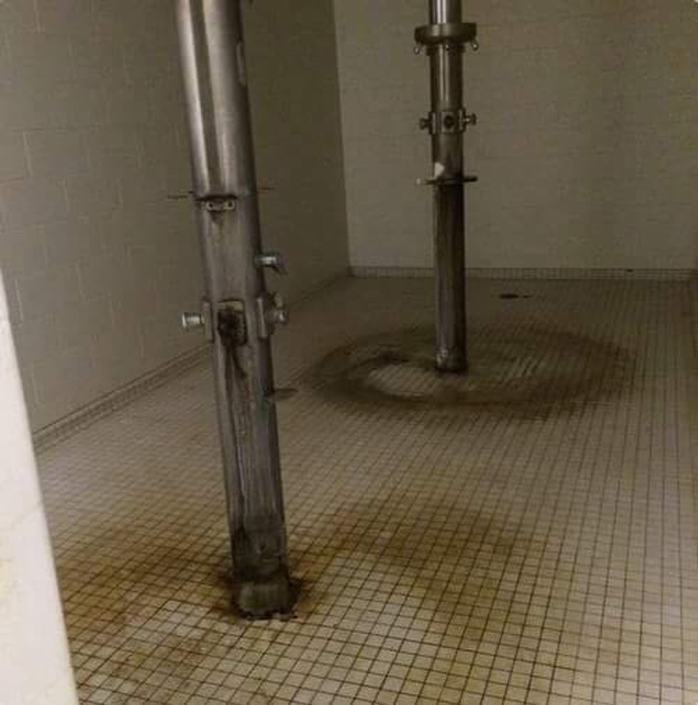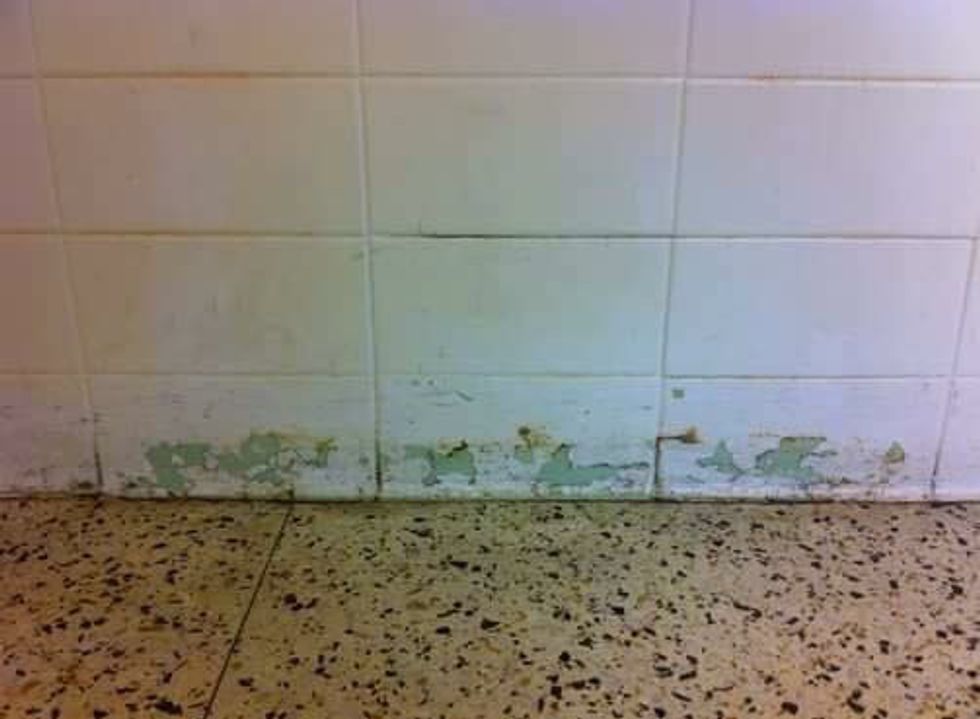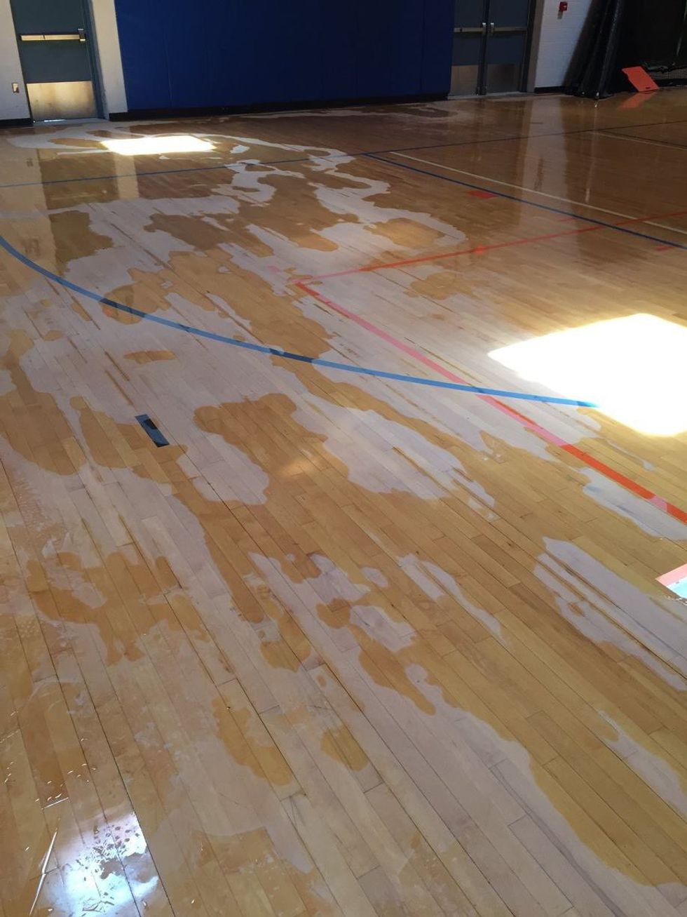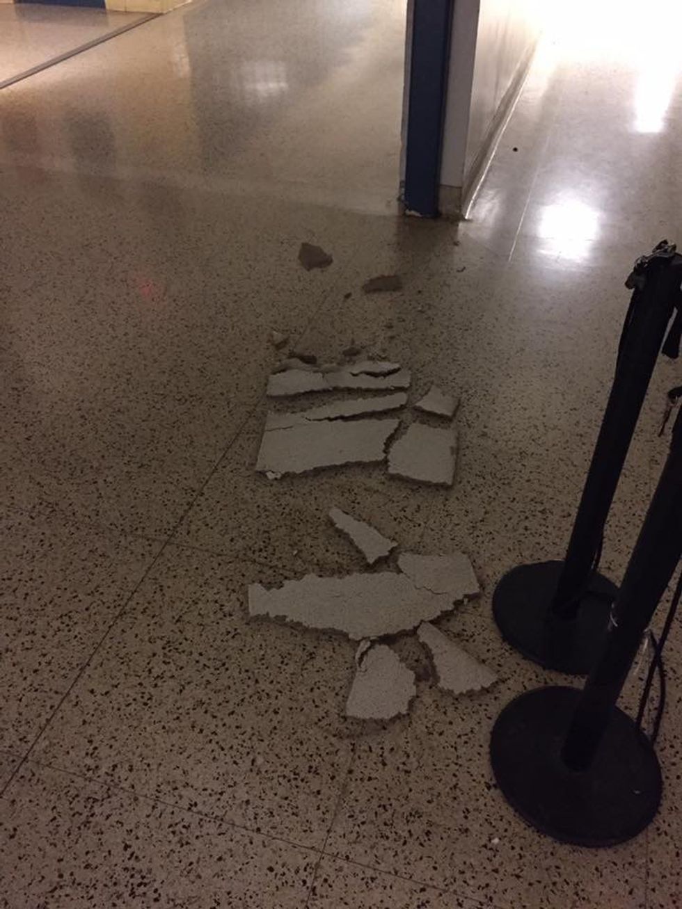 Every time it rains, trash cans have to be placed underneath this hole in the ceiling right where student's receive school lunch